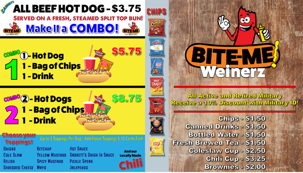 Here at Bite-Me Weinerz, we have one goal; To provide the Upstate with the best tasting hot dogs, Sabrett’s. And great customer service!